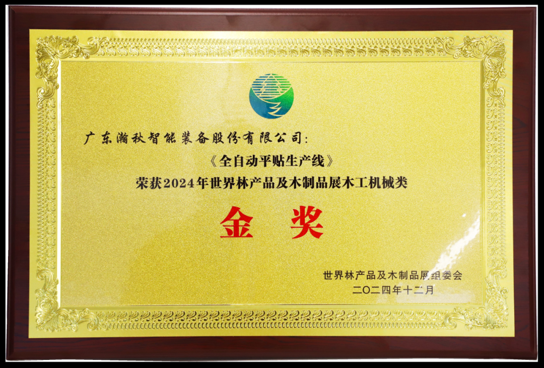 喜訊!廣東瀚秋《全自動平貼生產(chǎn)線》榮獲世界林木業(yè)大會金獎