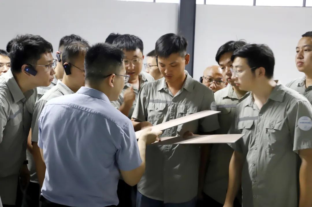 為了讓工程師們更直接地體驗飾面板生產(chǎn)過程,來到3000㎡的體驗中心。工程師們在我們的打樣體驗中心,親自體驗了淋涂高光、3D壓紋、PUR平貼、準分子膚感以及涂飾仿真同步壓紋等等工藝流程。工程師們與技術(shù)人員進行了交流,更直觀地感受到了普瑞特在涂飾上的精益求精,獲得了工程師們的一致認可。 萬科工程師們帶著專業(yè)的問題,與廣東瀚秋普瑞特技術(shù)團隊進行了深度交流。雙方在技術(shù)領域的智慧碰撞,共同探討中國智造的創(chuàng)新和方向。